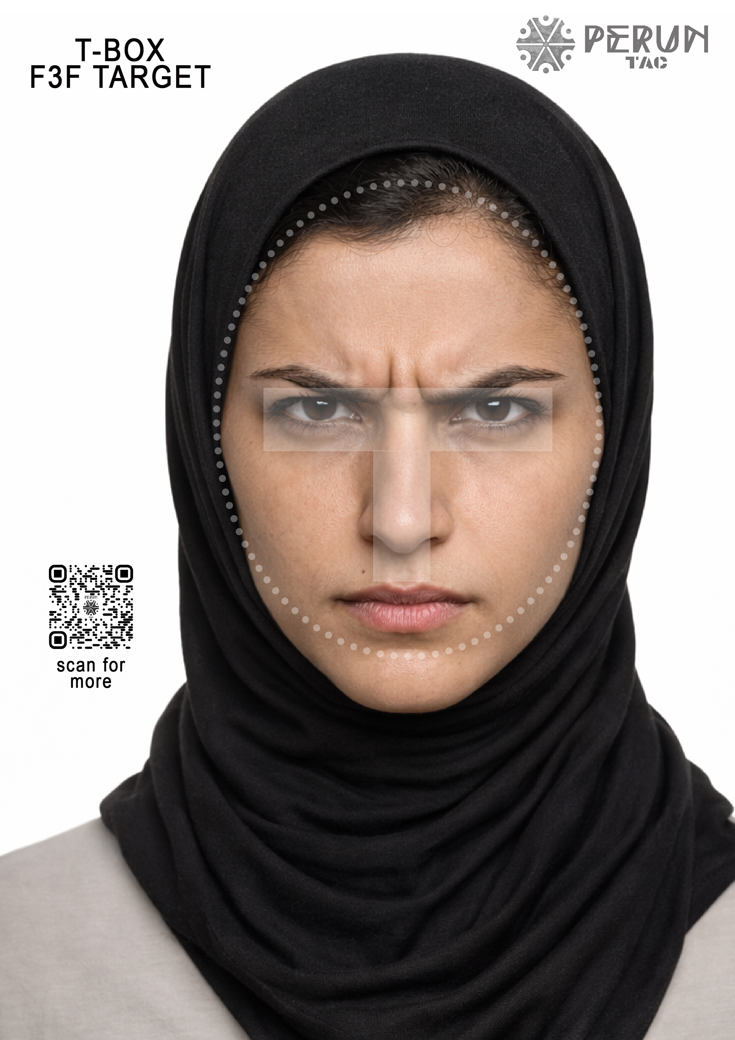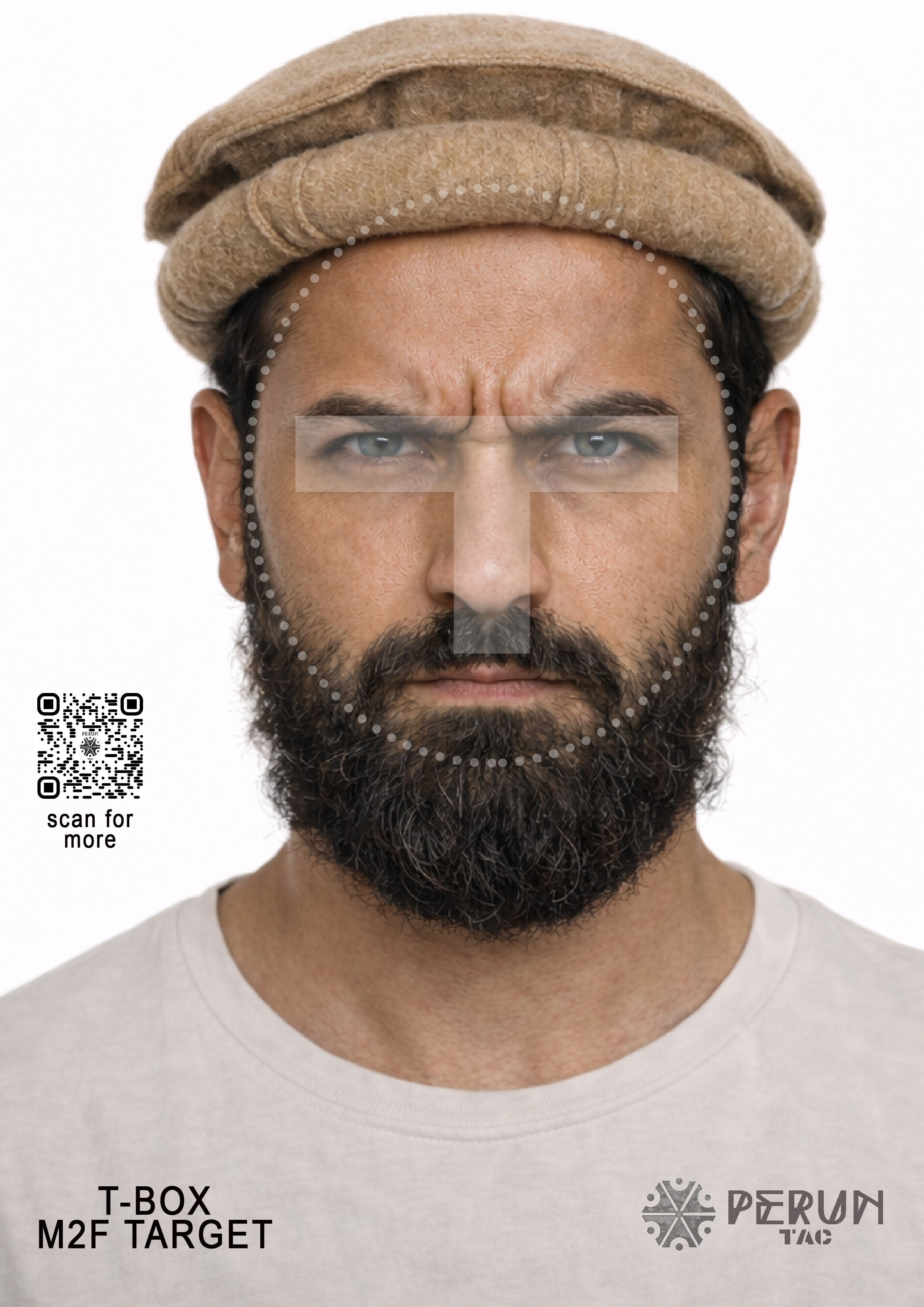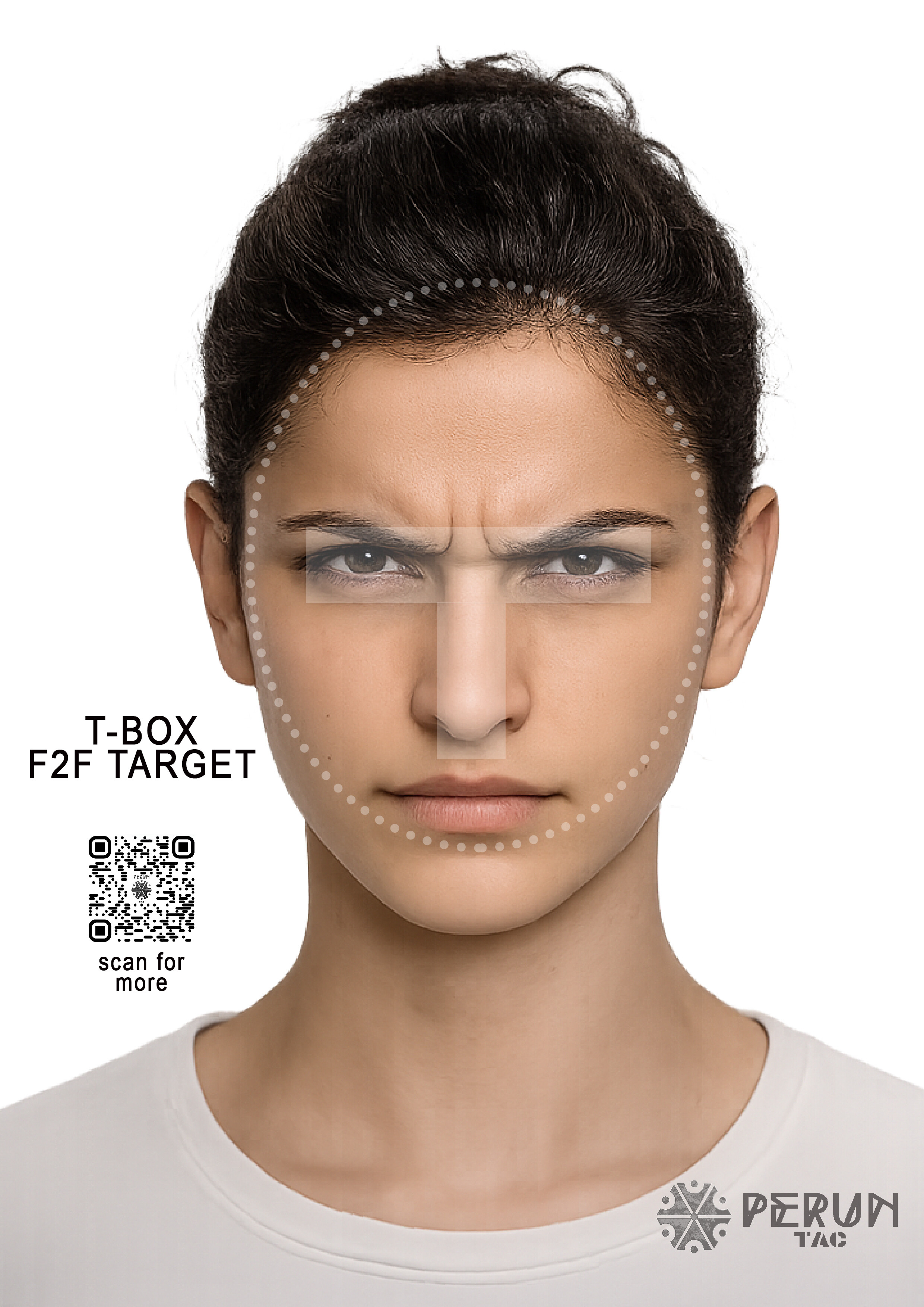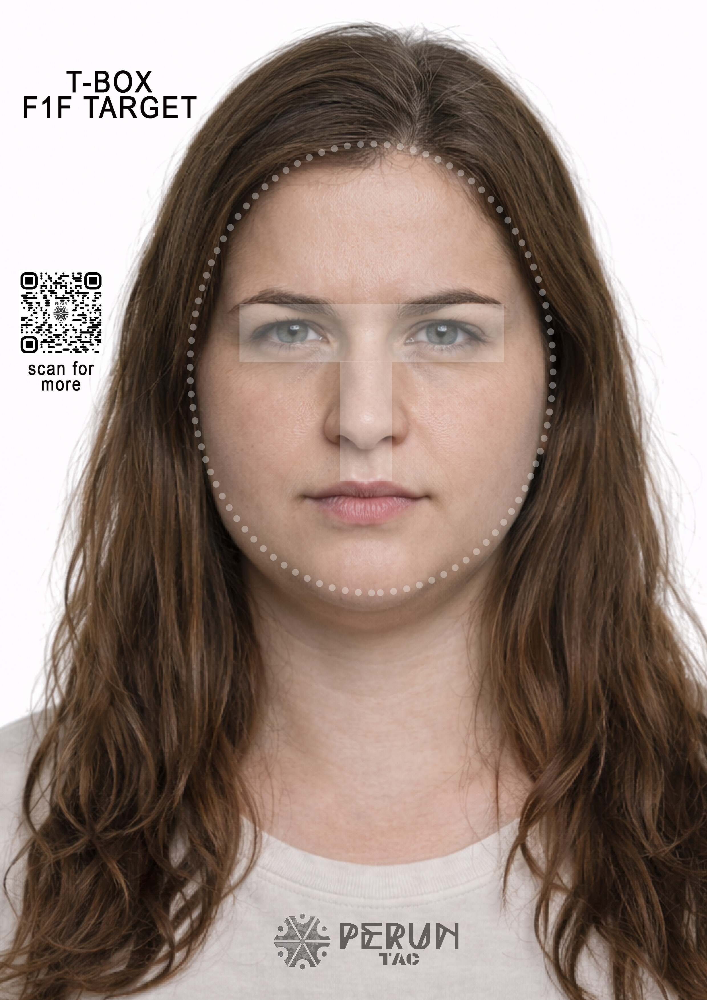 Zbiór twarzy w formacie A4, z zaznaczoną strefą t-box.