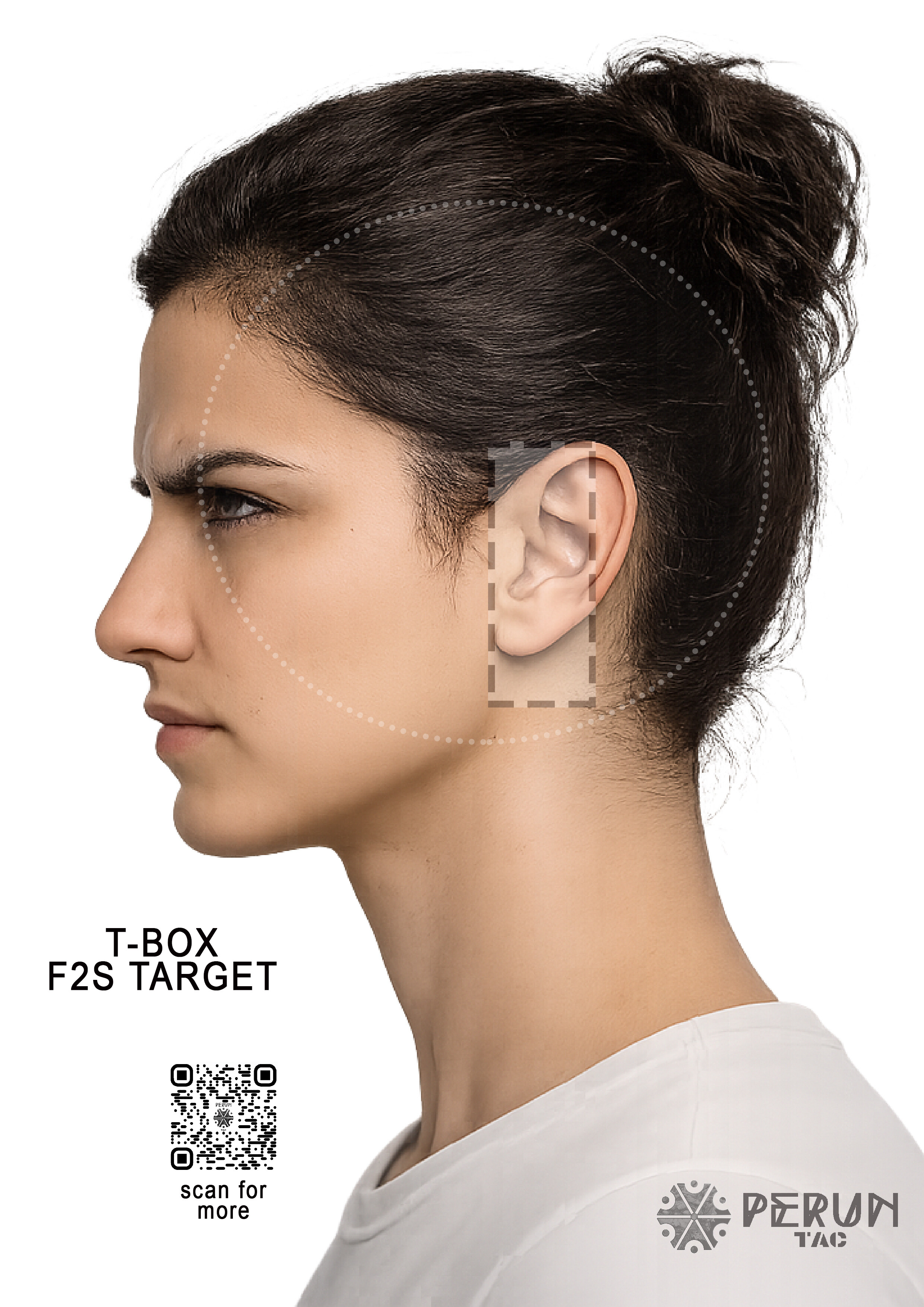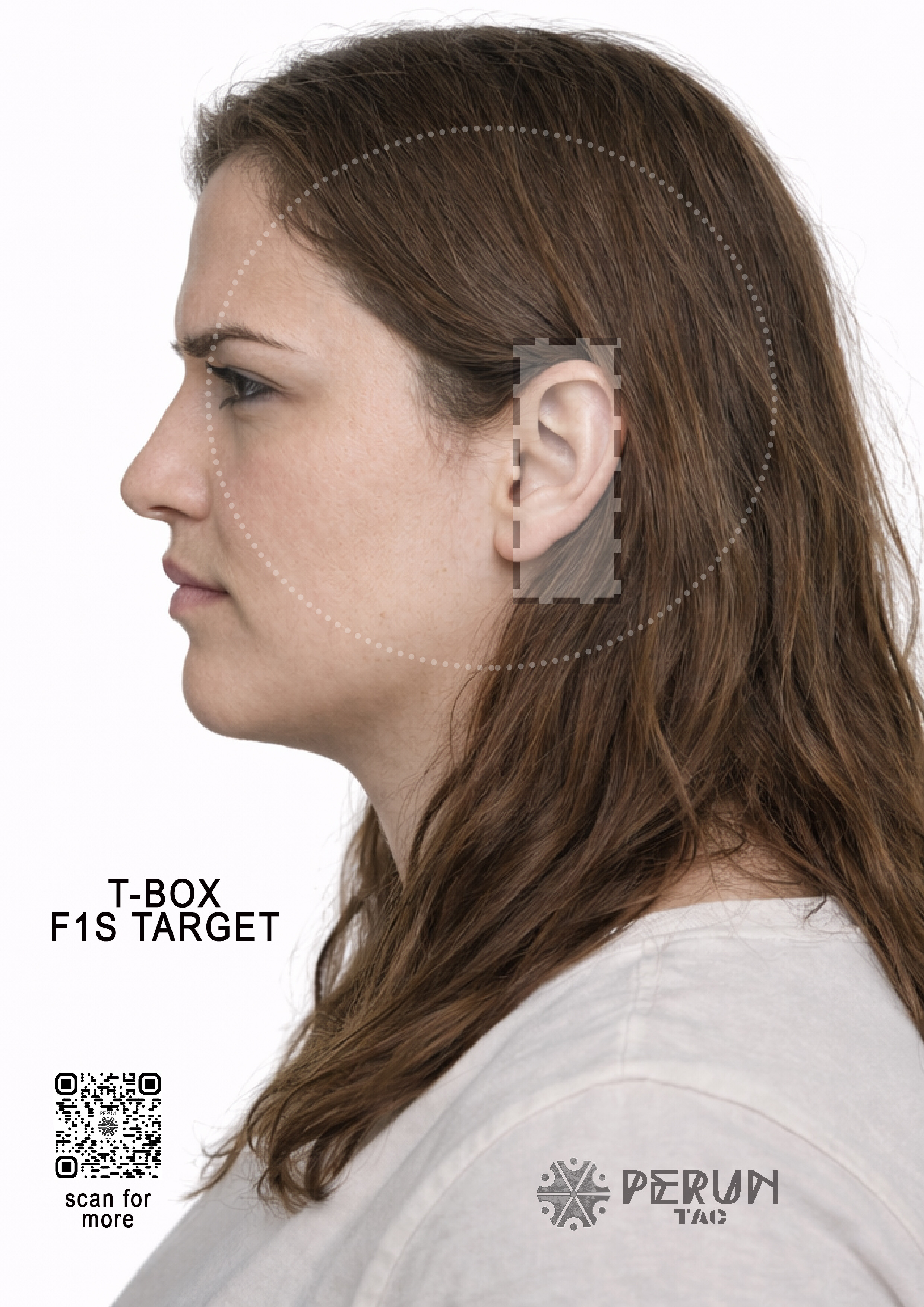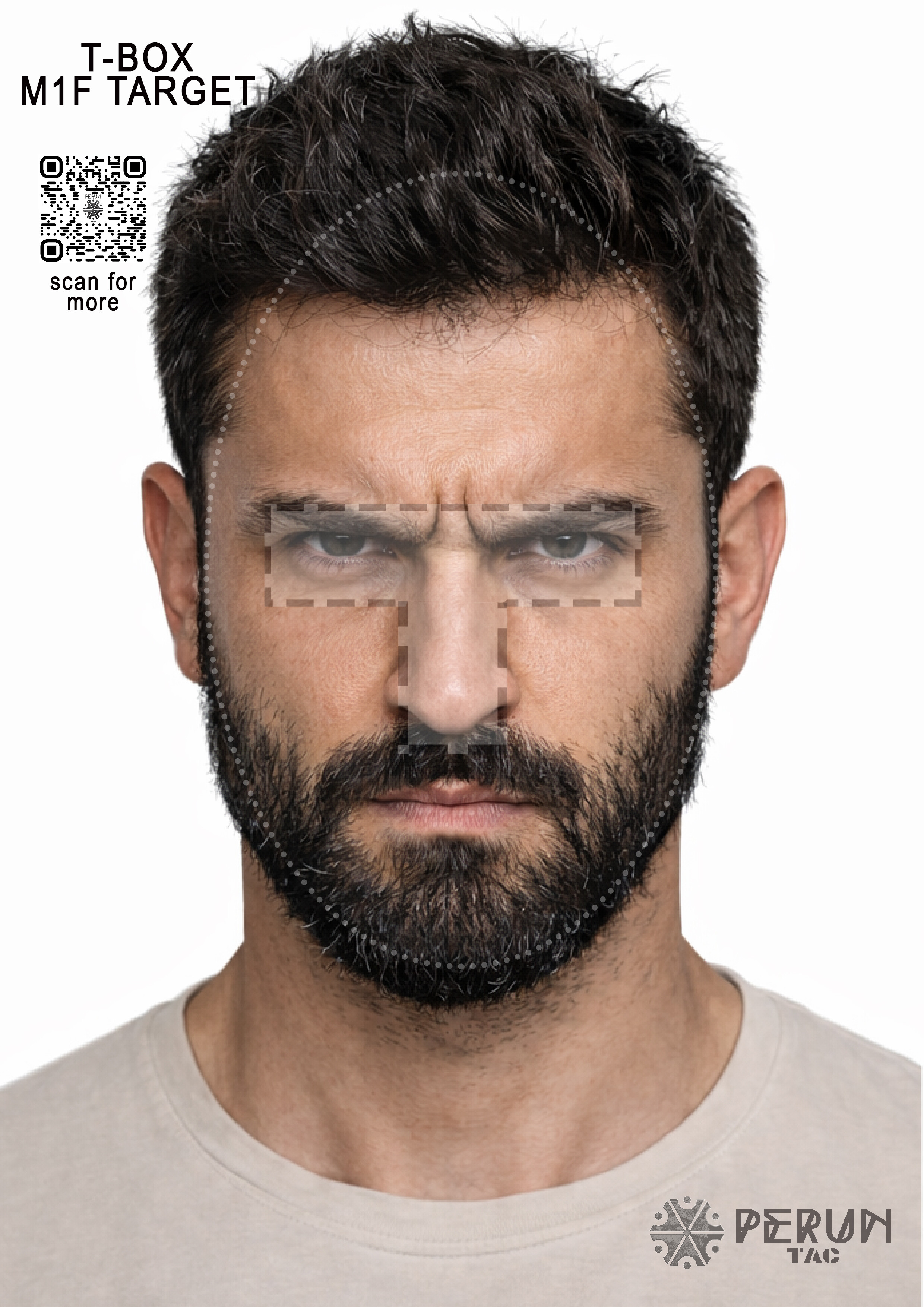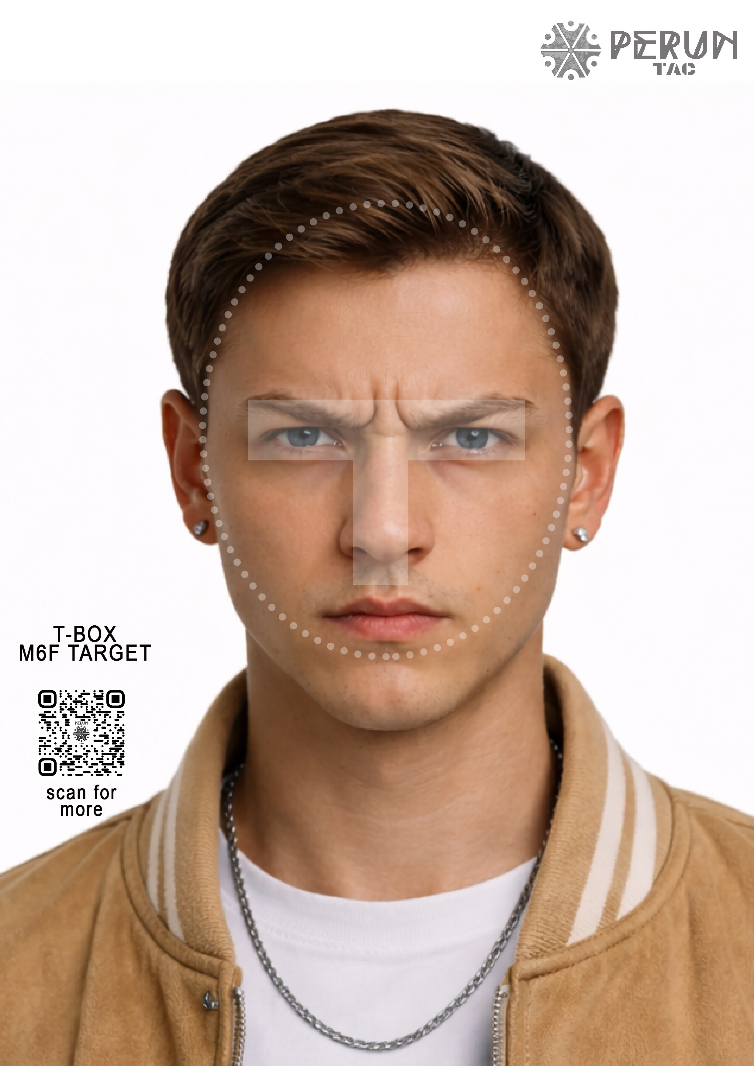Zbiór twarzy w formacie A4, z zaznaczoną strefą t-box.