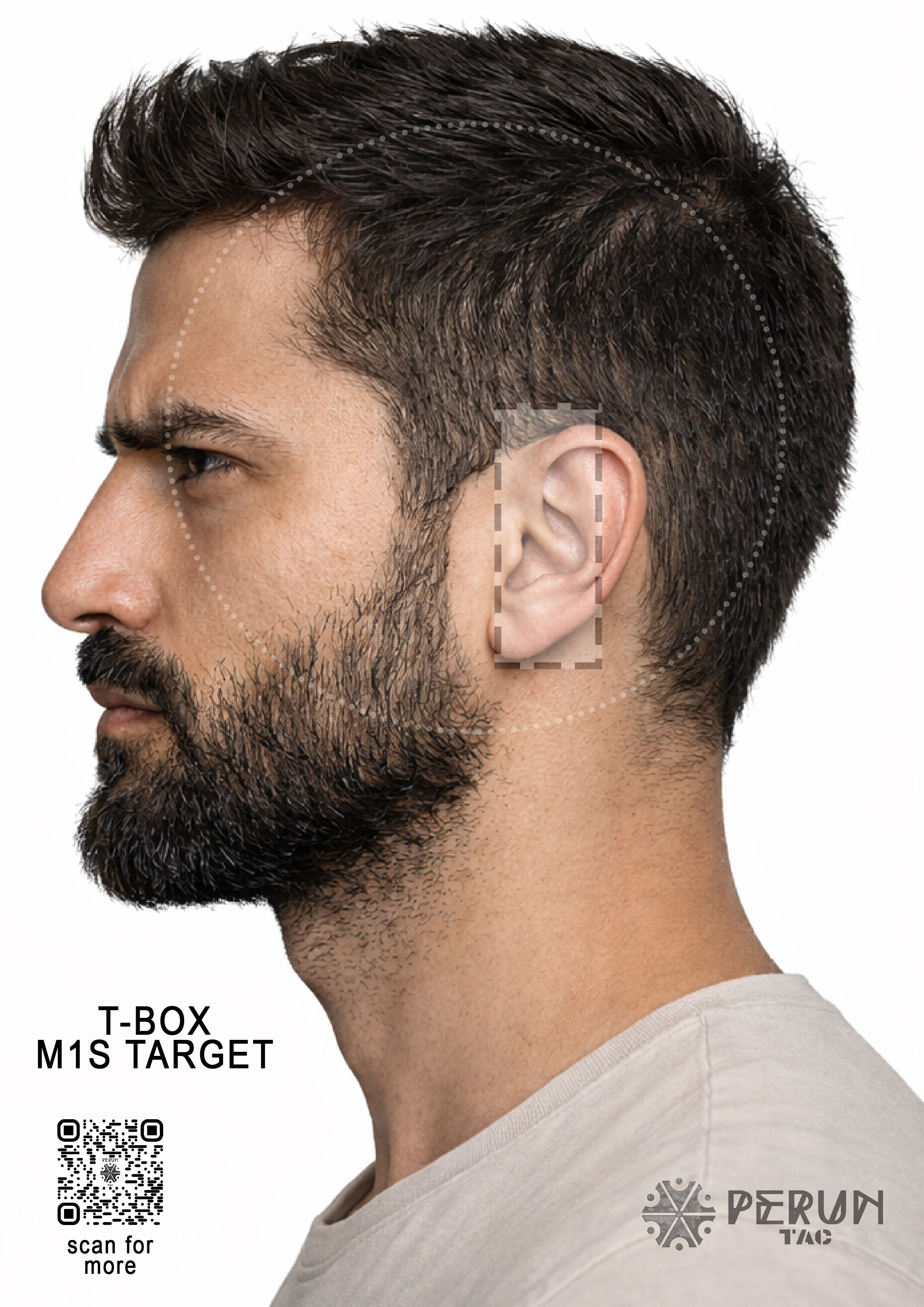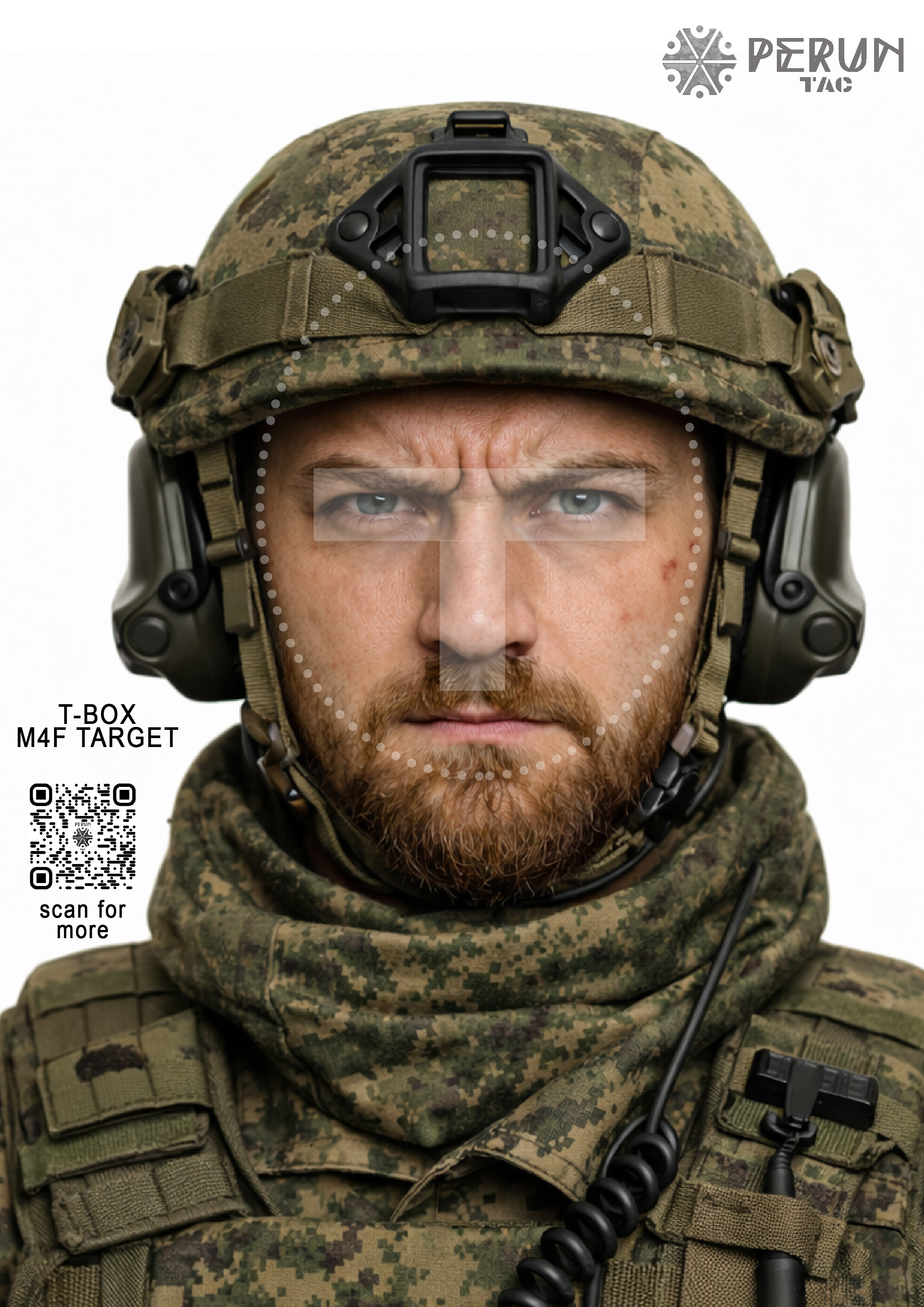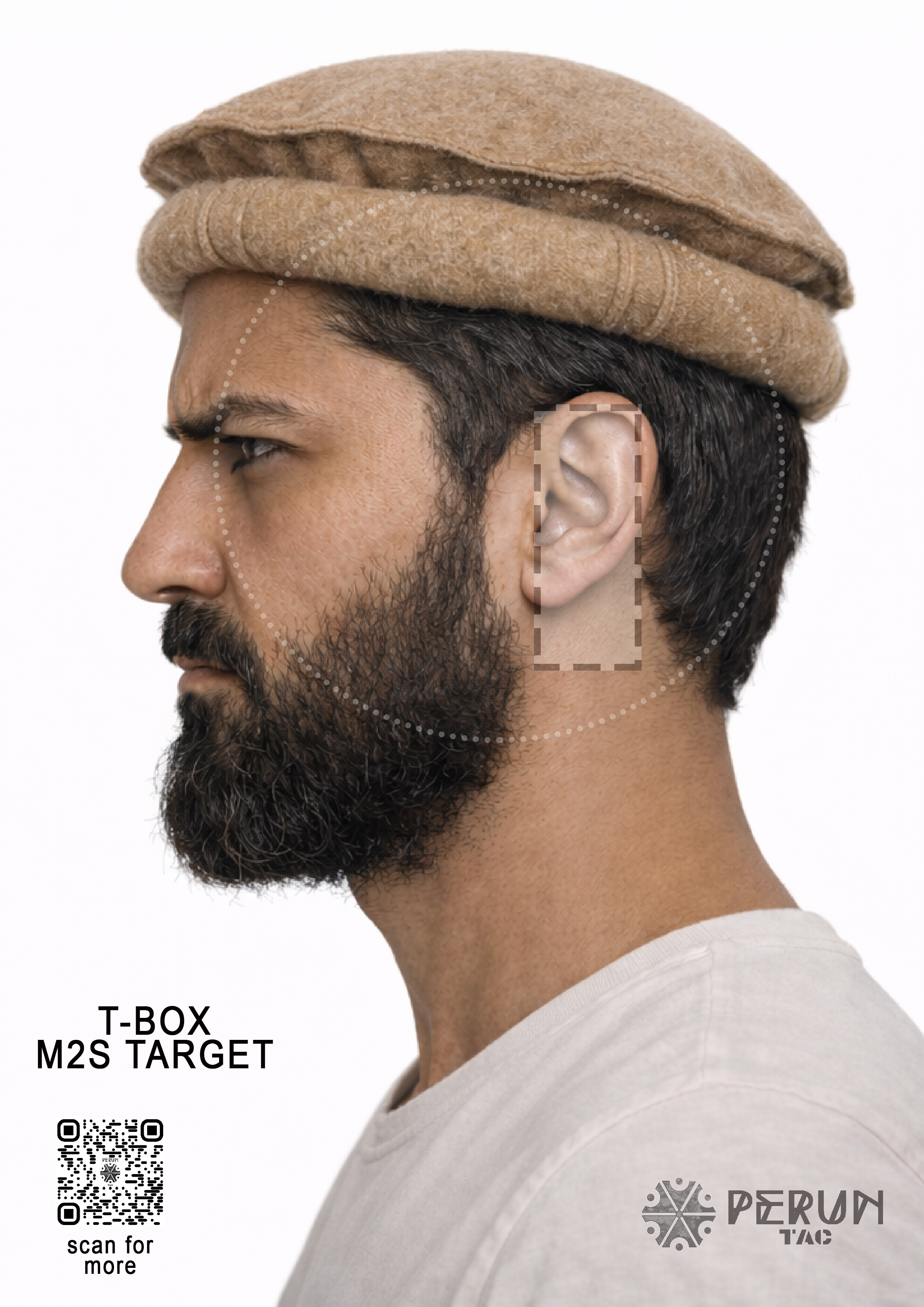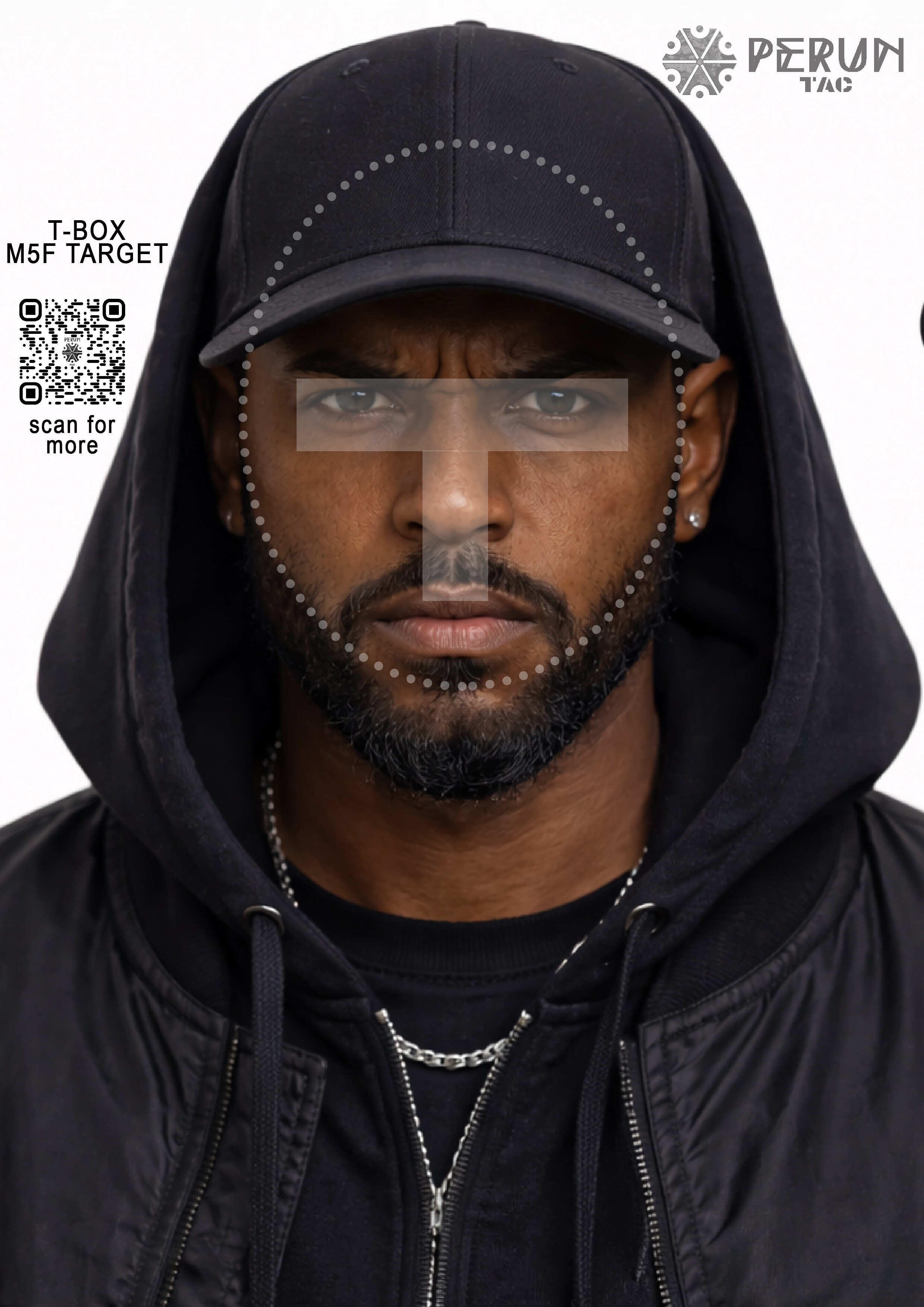 Zbiór twarzy w formacie A4, z zaznaczoną strefą t-box.