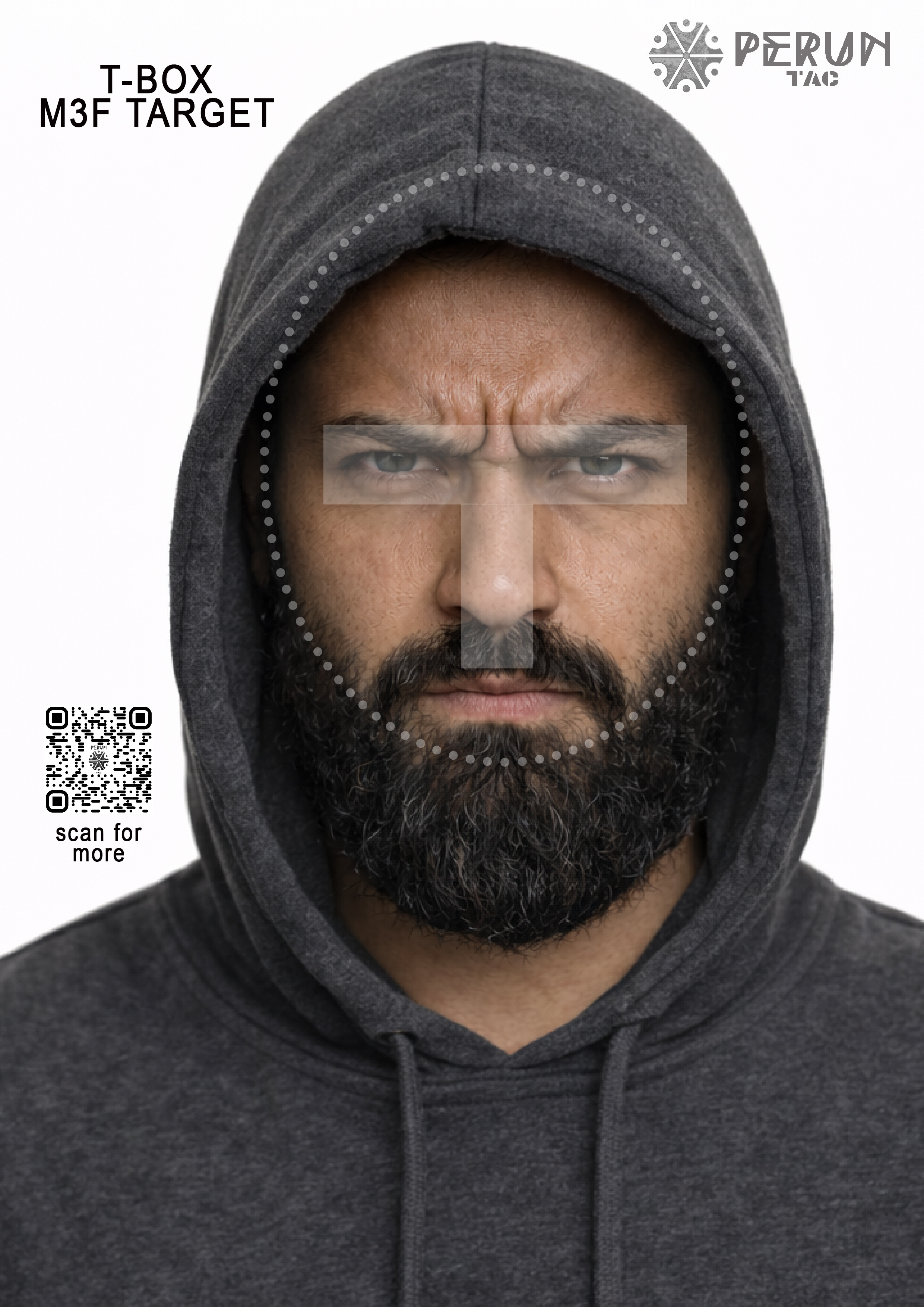 Tarcza przy wydruku w skali 100% odpowiada wymiarem strefie alfa z tarcz typu IDPA/PIRO.